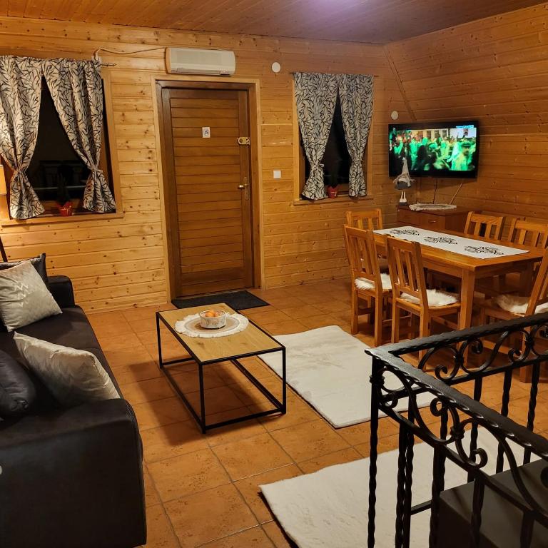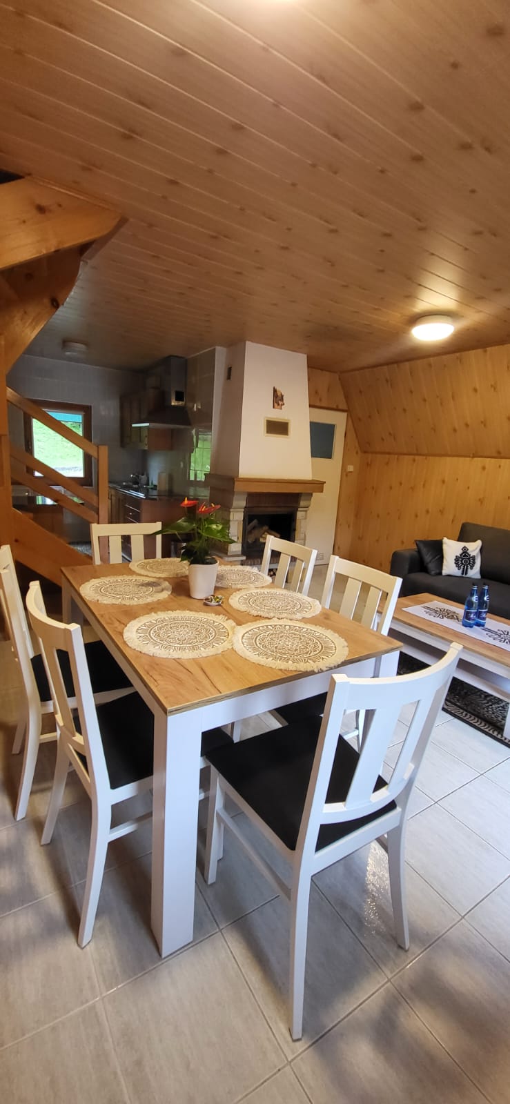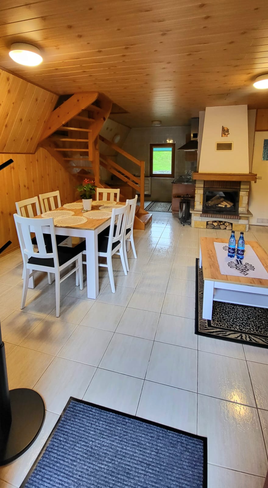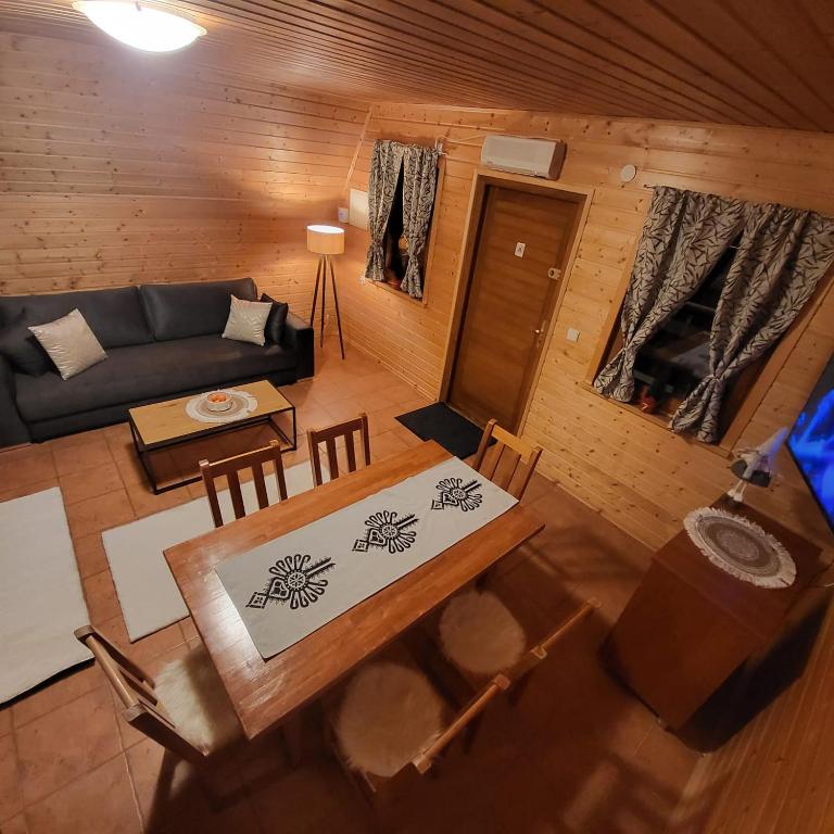 Na pierwszej kondygnacji znajduje się salon z kominkiem łazienka z prysznicem, oraz w pełni wyposażony aneks kuchenny. Druga kondygnacja zawiera dwie oddzielne sypialnie.